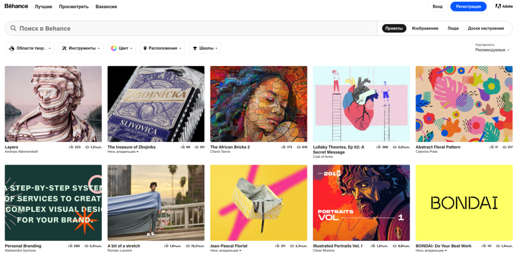 Популярное международное сообщество для дизайнеров. Здесь можно разместить портфолио, следить за проектами коллег, общаться на профессиональные темы и искать работу.