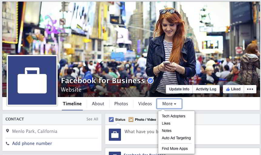 Это, я думаю, одно из изменений, которое вызвало больше полемики среди менеджеров страниц, чем любое другое. Как вы, наверное, сами заметили, то табы или, как их еще называют, вкладки, приложения, — исчезли. Не совсем, конечно. Они теперь находятся в меню «Больше», то есть, чтобы увидеть вкладки пользователь должен кликнуть на кнопку, что несомненно усложняет весь процесс. Но самое неприятное, что вкладки теперь не имеют изображений и, как следствие, привлечь к ним внимание будет еще сложнее. С новым дизайном страниц они будут выглядеть, как обычный список.