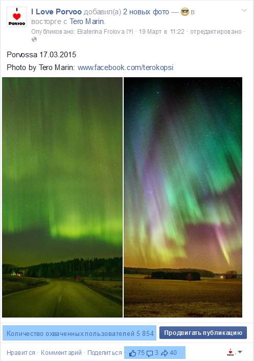 Вот, к примеру, один пост с очень маленькой, местной странички. На тот момент на странице было около 350 поклонников. Посмотрите, какого охвата можно добиться интересным для аудитории постом: охват +1600%, 75 лайков, 3 комментария и 40 перепостов.