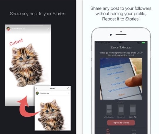 RepostToStories for Instagram — полностью бесплатное приложение, которое позволяет репостить обычные фото и видео посты в истории. Публикации могут быть как Вашими, так и чужими.