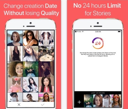 Это приложение, кстати, можно также использовать для загрузки в истории фото старше 24 часов, так как при сохранении отредактированного изображения создаётся новая дата.